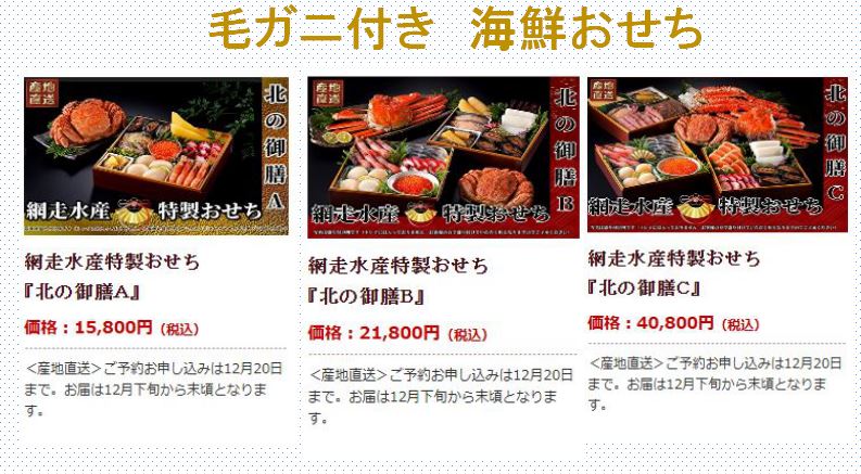 - 大人気期間数量限定”毛ガニが付いた海鮮おせち”のご紹介です
